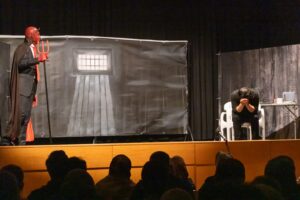 Nach einer kurzen Pause folgte der zweite Teil, „Die Zelle“, in dem die Zuschauenden eine intensive Auseinandersetzung des Menschen mit Einsamkeit, Glauben und Gewissen erlebten.